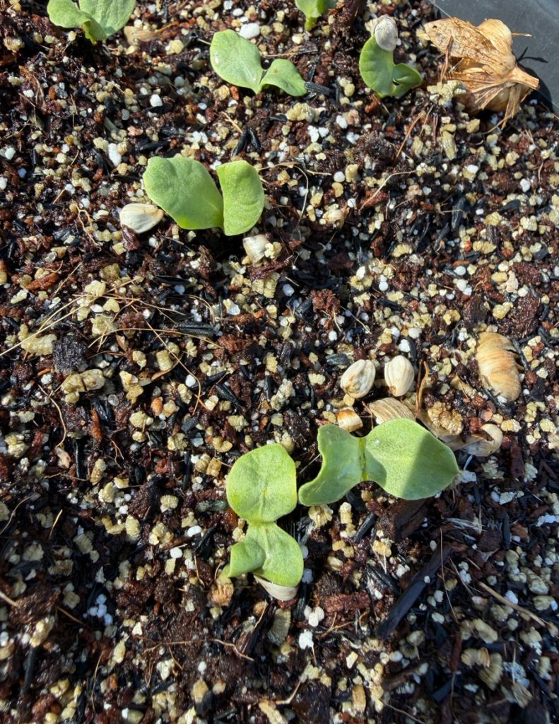 無加温ハウス内のカレンデュラです。昨年種まきしたものです。